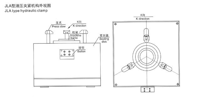 本機由液壓系統(tǒng)、機械部件,電器控制及多極氣源升壓裝置系統(tǒng)等部件組成。液壓系統(tǒng)是本試驗臺的動力主源。用于各類液壓缸和機械件驅(qū)動執(zhí)行功能。試驗面夾爪由液壓缸直接驅(qū)動執(zhí)行,軸向夾緊壓力是按閥門試驗壓力等級不同進行調(diào)節(jié)增壓(最高液壓增壓壓力31 5MPa)。各夾爪受力均,夾緊可靠。徑向移動由液壓缸傳動執(zhí)行,各夾爪進退同步,靈活自如,確保通徑大小不同閥門的測試。多極氣源升壓裝置是利用液氣聯(lián)動增壓。增壓范圍0.6—32 0MPa,用于閥門介質(zhì)壓力試驗。氣源升壓工作設有自動和手控二種操作選擇,當選用自動升壓工作時,工作人員可以近距離離開操縱臺觀察現(xiàn)場試驗情況。
