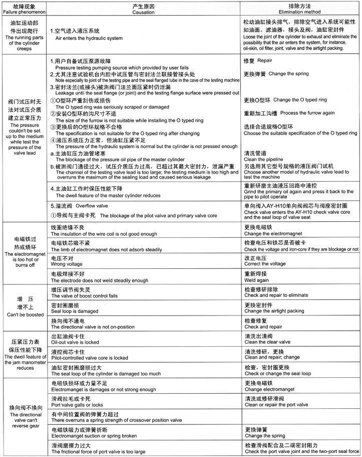 七、試驗工作臺密封盤和被試閥門接觸面,保持清潔干;爭,不允許有油液和其他雜物,本機在使用工作過程中嚴禁人員靠