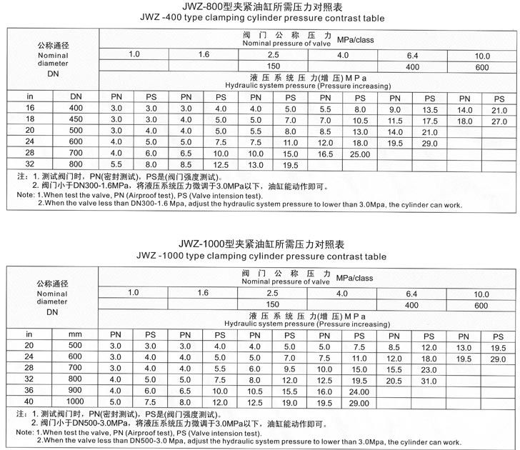 五、測(cè)試閥門時(shí),首先根據(jù)被試閥門試驗(yàn)壓力,要求參照《壓緊油缸所需壓力對(duì)照表》中液壓壓緊系統(tǒng)壓力值,進(jìn)行增壓壓力調(diào)節(jié),嚴(yán)禁增壓壓力值超高、防止被試閥門變形損壞。