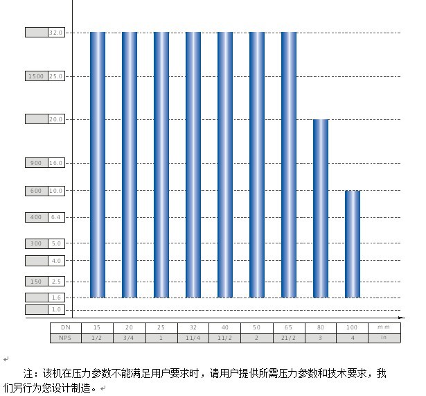 ?????? ?The test range of valve nominal diameter and nominal pressure for JWZ-100 model