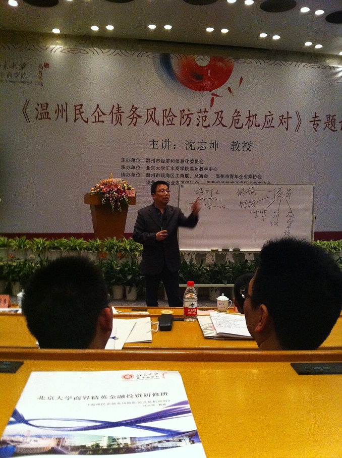 本月8日應(yīng)溫州中小企業(yè)發(fā)展促進(jìn)會(huì)的邀請(qǐng)我公司領(lǐng)導(dǎo)參加在溫州市人民大會(huì)堂5樓國(guó)際會(huì)議廳舉行的溫州民企債務(wù)風(fēng)險(xiǎn)防范及危機(jī)應(yīng)對(duì)專題講座,本期講座由溫州市經(jīng)濟(jì)和信息化委員會(huì)主辦,北京大學(xué)匯豐商學(xué)院溫州教學(xué)中心具體承辦。本次講座的內(nèi)容是針對(duì)溫州民營(yíng)企業(yè)特點(diǎn),主要分析當(dāng)前溫州民企在生產(chǎn)、經(jīng)營(yíng)過(guò)程中所要面對(duì)的主要債務(wù)和法律風(fēng)險(xiǎn)以及如何應(yīng)對(duì)與防范風(fēng)險(xiǎn)的建議,引導(dǎo)企業(yè)在處理危機(jī)的過(guò)程中實(shí)現(xiàn)企業(yè)的持續(xù)健康發(fā)展。